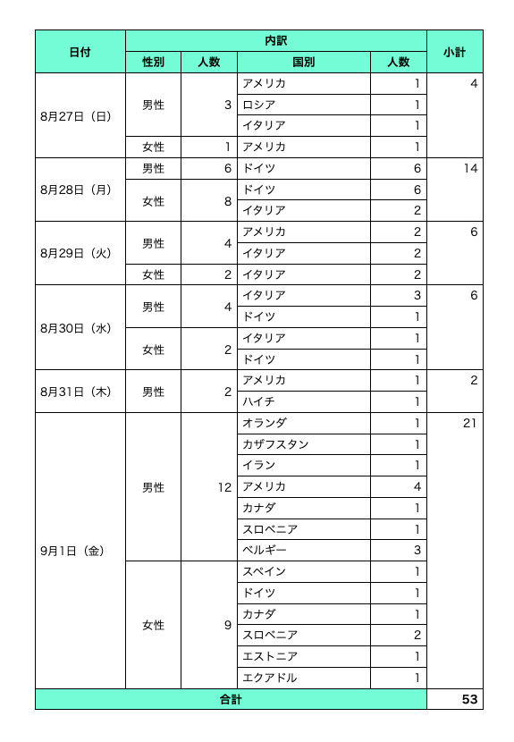 こうして我々の大会での診療が始まった。診療室を訪れた外国人は選手41名、役員12名で、中にはオリンピック代表選手なども含まれていた。ほとんどの人が初めての鍼治療で、コンディショニングの調整のために受診した人、物珍しさから受診した人さまざまであったが、鍼治療で筋肉のこりが一瞬にしてなくなると、表現の差こそあれ皆一様に驚いていた。中には、コーチから鍼治療の許可がもらえず内緒で訪れた選手もいた。